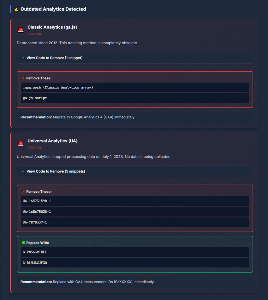 “This is now part of my standard site audit checklist. Outdated tracking scripts can actually slow down page load times and hurt SEO.”